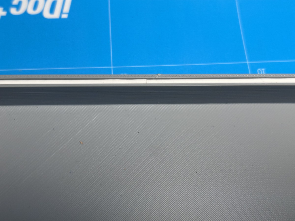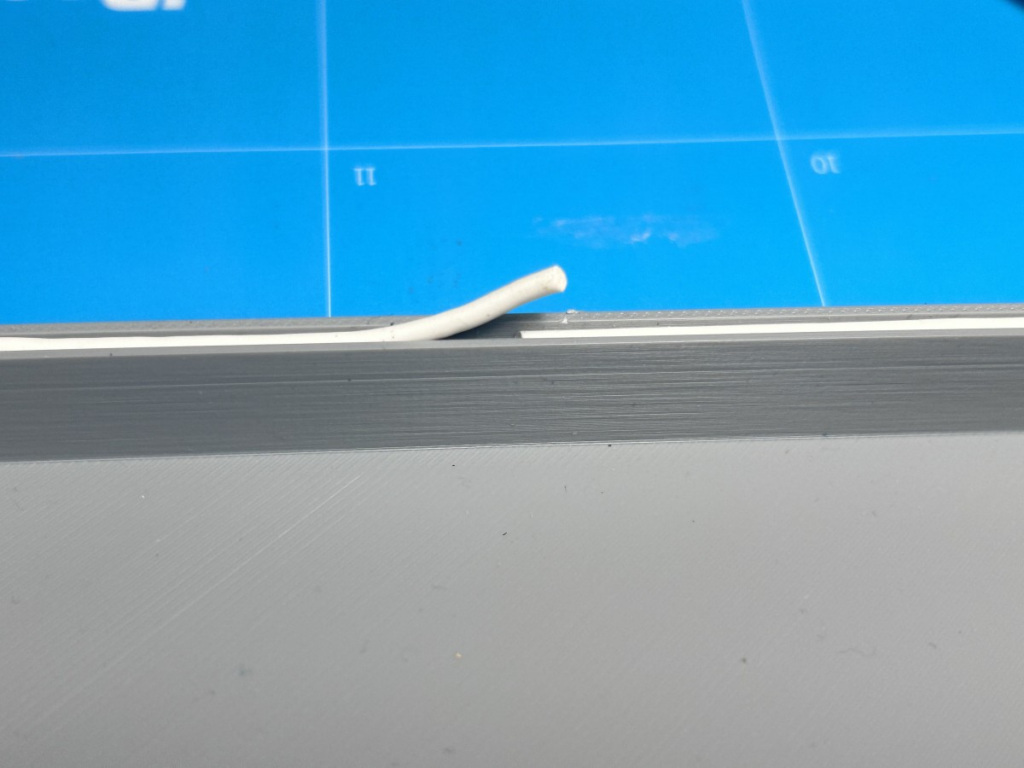 Nun legt man noch die 2mm Silikon-Dichtungsschnur in die entsprechende Nut des Gehäuseoberteils ein. Es muss darauf geachtet werden, dass die sehr leicht dehnbare Schnur keinesfalls unter Spannung eingelegt wird. Sie würde sich später wieder zusammenziehen und damit wäre die Dichtungsfunktion nicht mehr gegeben. Besonders in den Ecken neigt man dazu die Schnur unter Spannung einzuziehen! Die Schnur wird ca. 2-3 mm überlappend abgeschnitten. Anschließend wird sie etwas gestaucht und so ein wenig unter Druck eingesetzt. Springt sie dabei aus der Nut, versucht man sie wieder einzustreichen. Funktioniert auch das nicht, muss man etwas mehr von der Schnur abschneiden und noch einmal probieren.