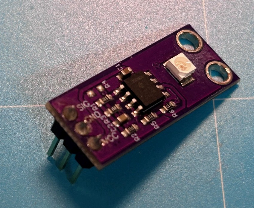 Als Dämmerungssensor wird der KY-018 Sensor verwendet. Dabei handelt es sich um einen Fotowiderstand, der als Spannungsteiler mit einem 10 kOhm-Widerstand geschaltet ist. Der Widerstandswert des Fotowiderstands verändert sich, je nachdem wieviel Licht auf ihn fällt. Gemessen wird der Spannungsabfall am Festwiderstand: Je dunkler es ist, desto geringer ist der Spannungsabfall und somit desto größer die gemessene Spannung. Der KY-018 wird an einem Eingang des ADS1115 der Steuerungseinheit ausgelesen.