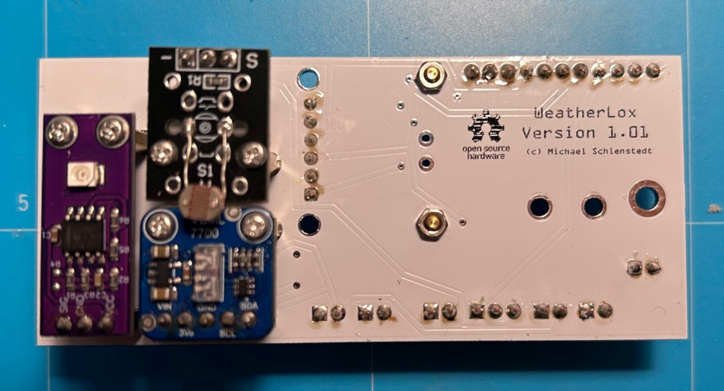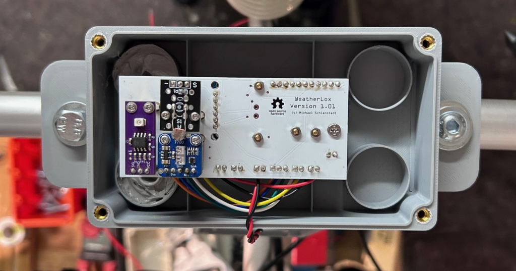 Die 3D-Druckfiles können hier heruntergeladen werden: https://github.com/mschlenstedt/WeatherLox/tree/main/case/weatherlox-solar