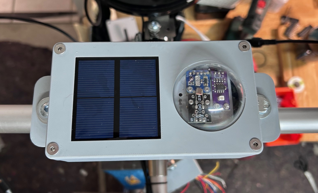 Die Solarstrahlung wird wie oben beschrieben über eine Solarzelle erfasst. Der Kurzschluss-Strom wird dabei von einem entsprechenden Sensor INA219 ermittelt und in die Strahlung umgerechnet.