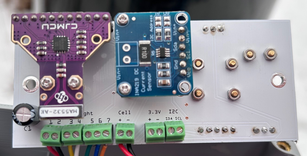Für den INA219 Sensor werden zwei Hex Distanzhülsen (Abstandshalter) mit den entsprechenden Muttern verschraubt. Sollte auch das Blitzmodul mit verbaut werden, kann man auch direkt die zwei Hex Distanzhülsen (Abstandshalter) für den Blitzsensor mit verbauen.