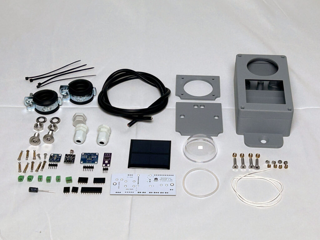 Für den Zusammenbau wird ein 3D-Druck-Gehäuse benötigt, welches speziell für diesen Sensor entwickelt wurde. Im Bausatz ist dieses Gehäuse natürlich enthalten. Es kann aber auch selbst gedruckt werden – dabei ist aber unbedingt darauf zu achten, dass ein wetterbeständiges, UV-Licht-resistentes Filament verwendet wird. Besonders gut geeignet ist ASA, was aber leider schwierig zu drucken ist.
