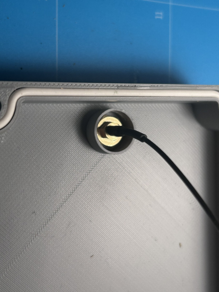 Als nächstes wird der Anschluss für die externe Antenne von innen durch den Gehäusedeckel gesteckt und mit der beiliegenden Mutter fest verschraubt. Die ebenfalls mitgelieferten Unterlegscheiben werden nicht verwendet.